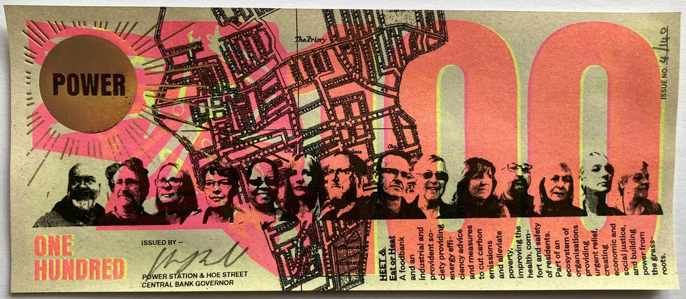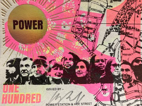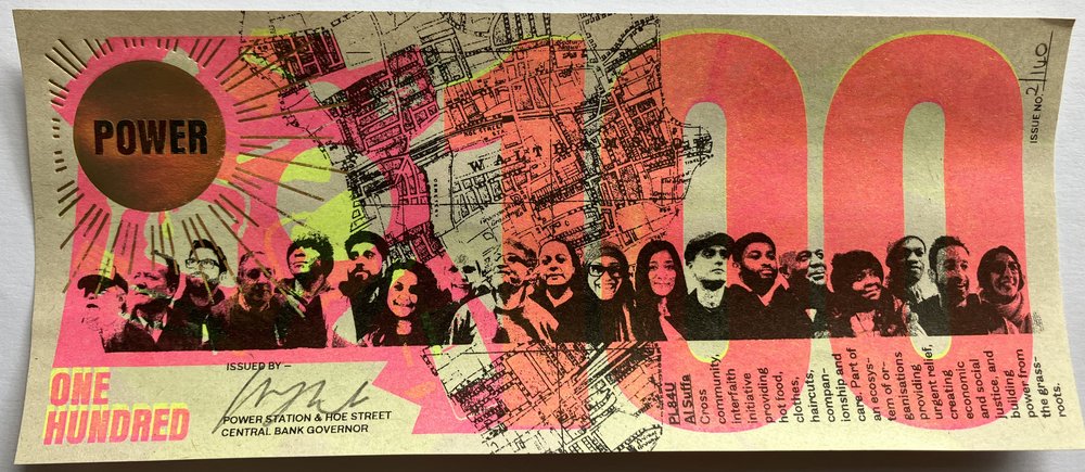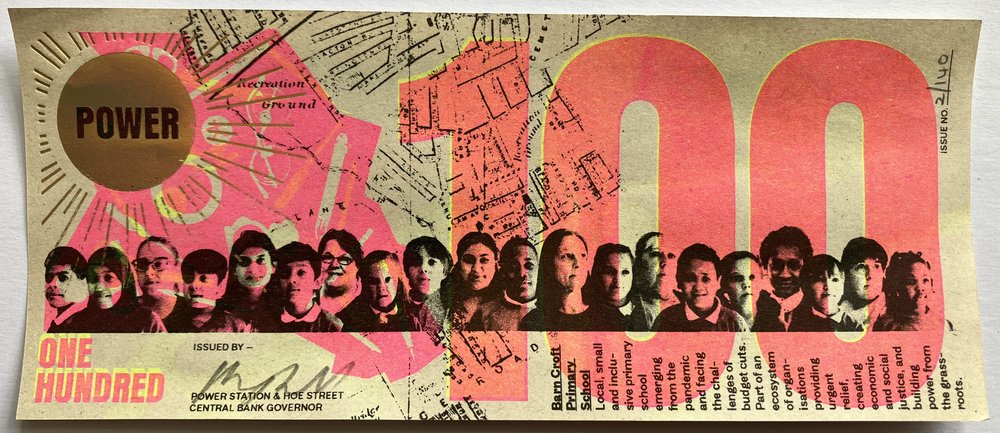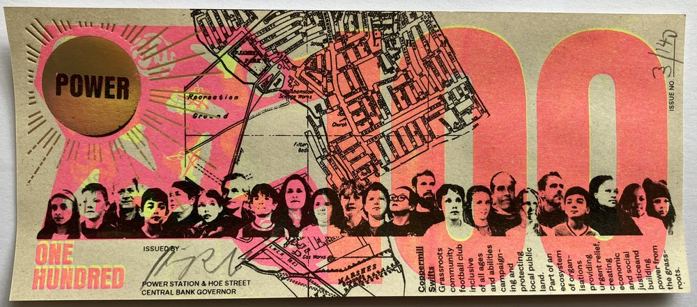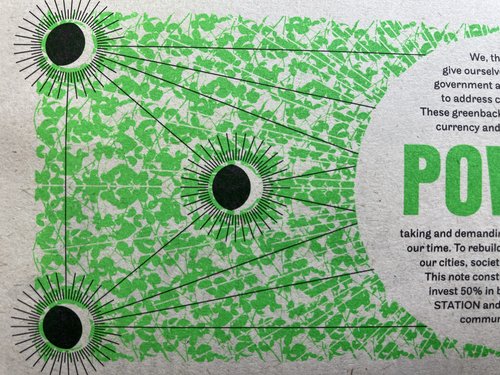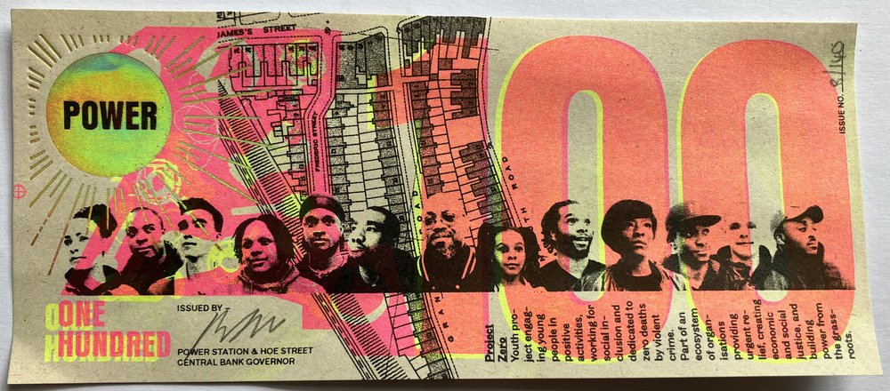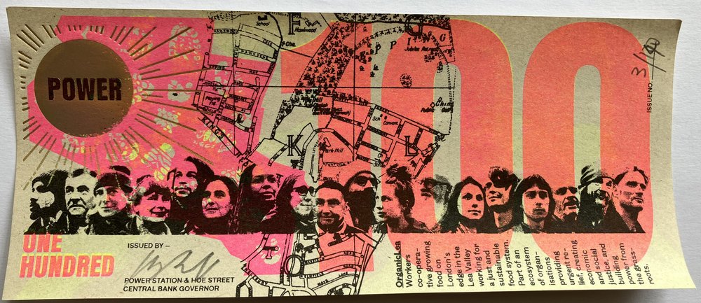 All Greenbacks were made in public in May 2022 in Walthamstow, North East London by a team of local people trained in riso printing, foil blocking and uv ink screen printing.