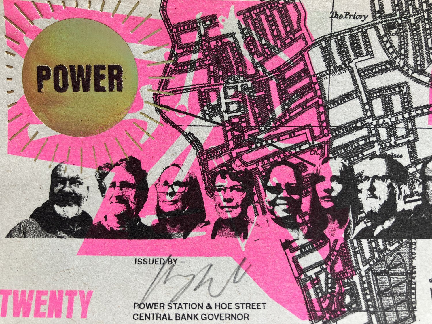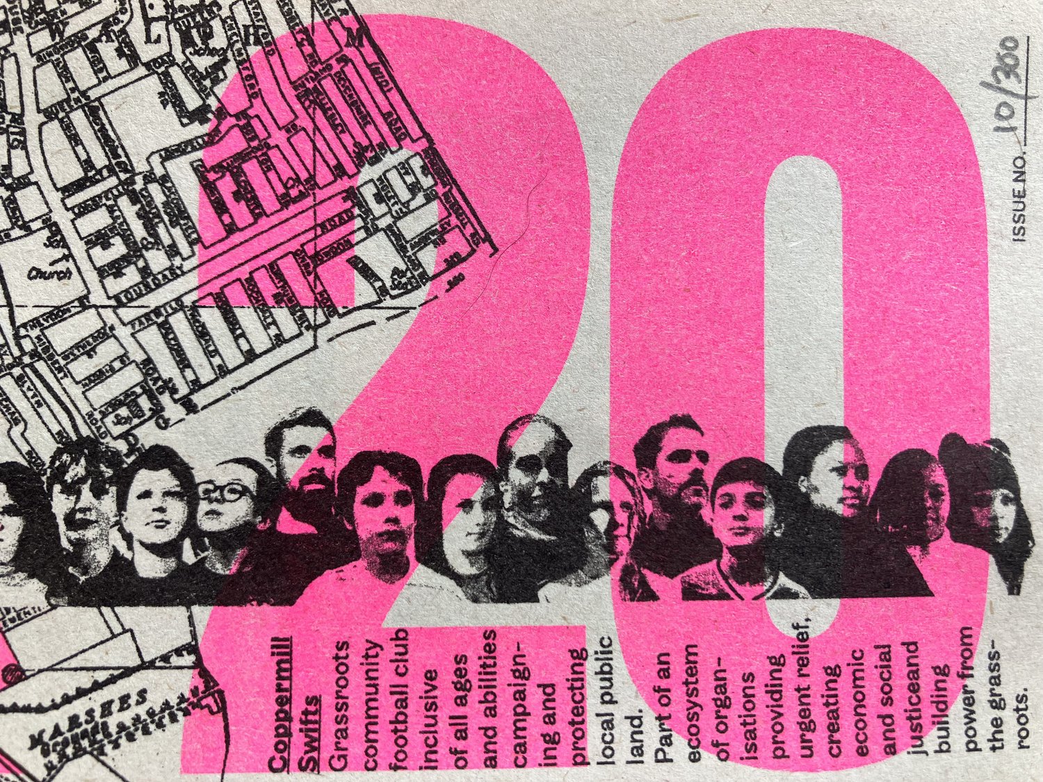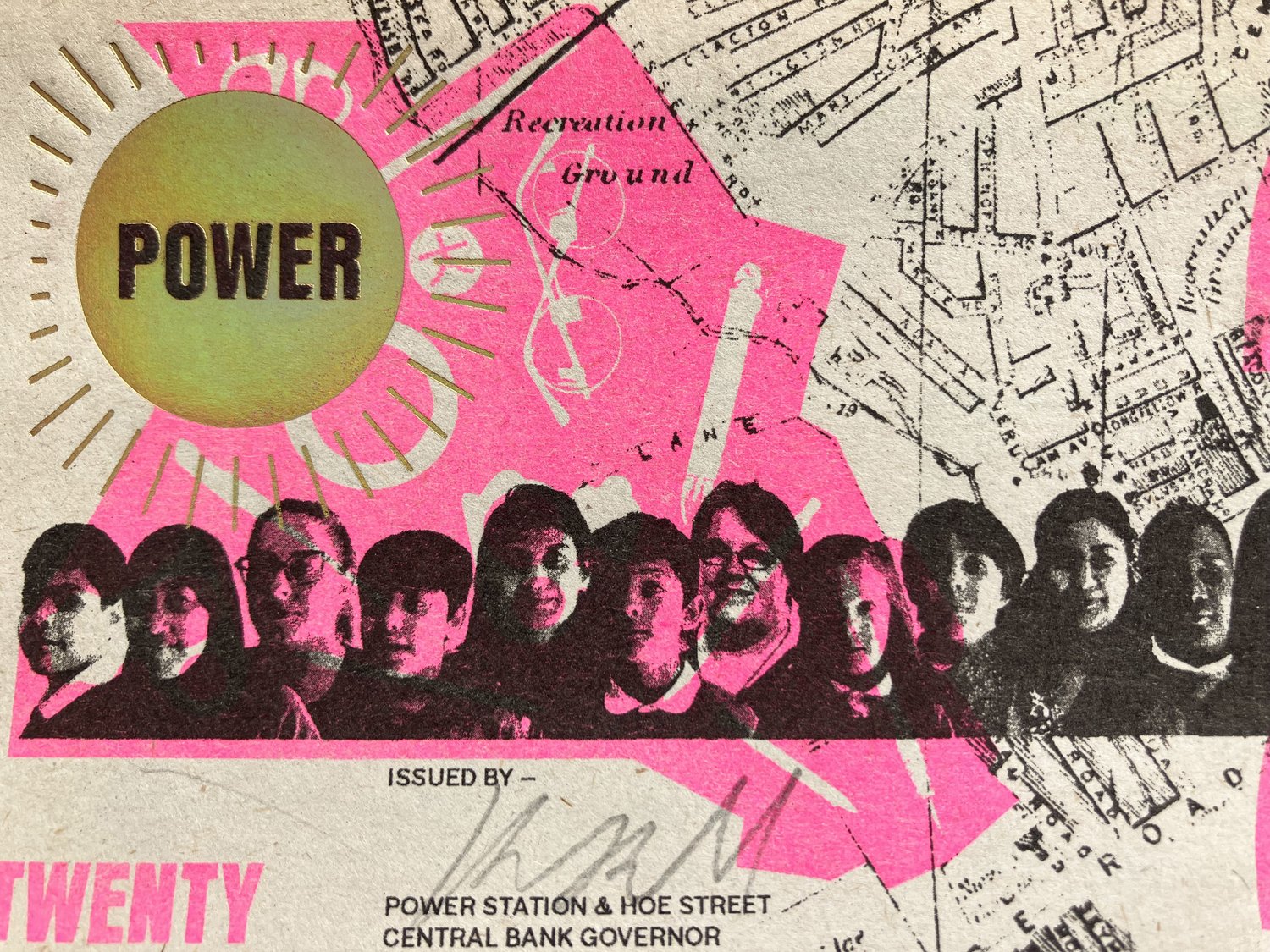 All Greenbacks were made in public in May 2022 in Walthamstow, North East London by a team of local people trained in riso printing, uv ink screen printing and foil blocking.